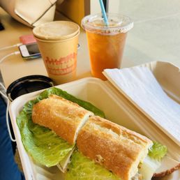 Me and my mom came back to CA after about 3 years, and we had some business to do here in Oakland in the morning and didn't have breakfast or coffee; we were walking around trying to find a simple place to sit and eat/drink and my mom noticed this little shop on the corner of Broadway and 10th street. We came inside and checked out the menu, the guy at the counter was so sweet and patient with us and gave us some suggestions. We ordered the Peppered Turkey with Cranberry, a Moroccan Mint Iced Tea and a medium roast hot coffee. The iced tea and coffee are great but the Peppered Turkey with Cranberry sandwich was AMAZING. Definitely coming back here the next time we're back in California. Much love to this shop, the owners and employees.